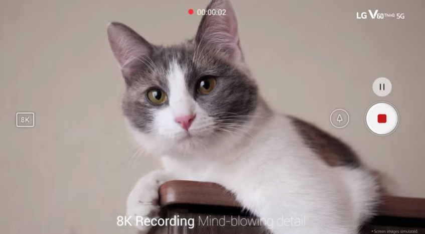 먼저 LG가 강조한 것은 카메라인데요, 이번에는 갤럭시 S20처럼 8K 촬영이 가능해졌다고 합니다.