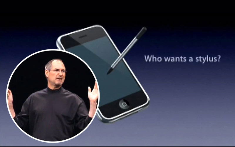 그 이유는 바로 바야흐로 2007년, 아이폰이 처음 출시하였을 때 스티브 잡스가 "Who Wants A Stylus?"(누가 스타일러스 펜을 원합니까?)라고 말을 했기 때문입니다.