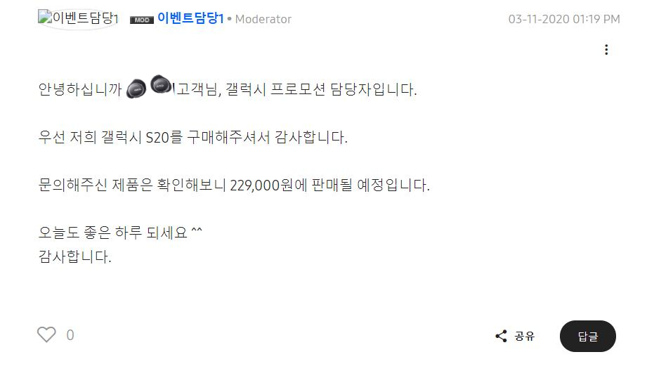 갤럭시 멤버스에 올라온 게시물에 따르면 정가는 약 22만원입니다.