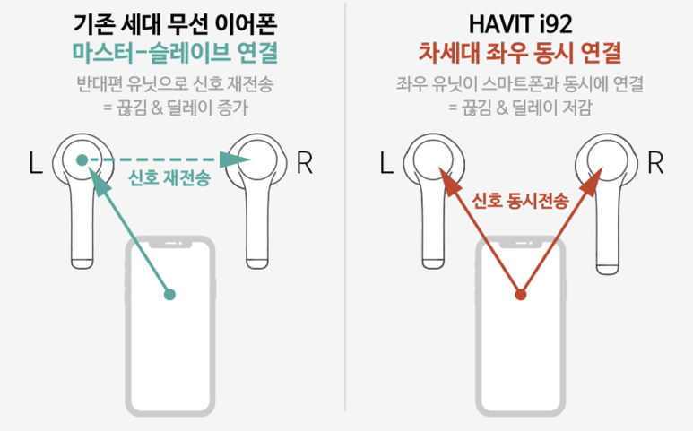 그리고 n400은 일반적이 코드리스에서 쓰이는 마스터 슬레이브 방식으로, 오른쪽이 메인으로 블루투스를 잡아 왼쪽에 연결을 하는 방식이어서 왼쪽 단독 사용이 불가하였습니다.