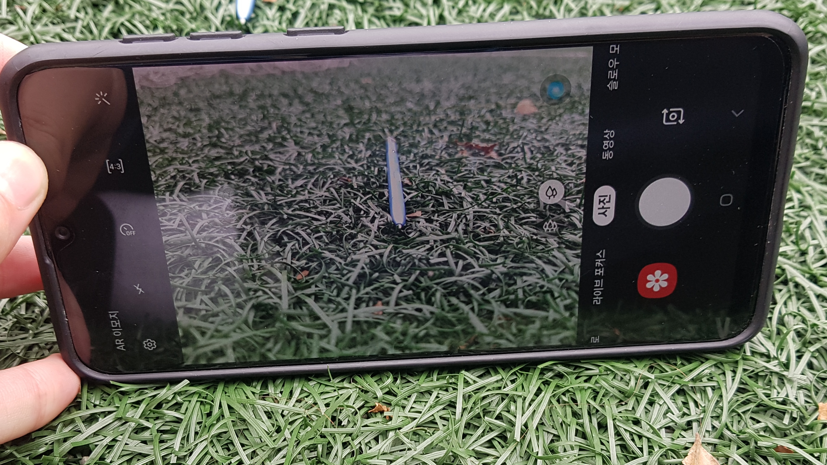 갤럭시 S10, 노트10 같은 경우에는 카메라가 일자 모양으로 되어 있어 중앙이 변경되는 현상이 나타납니다.