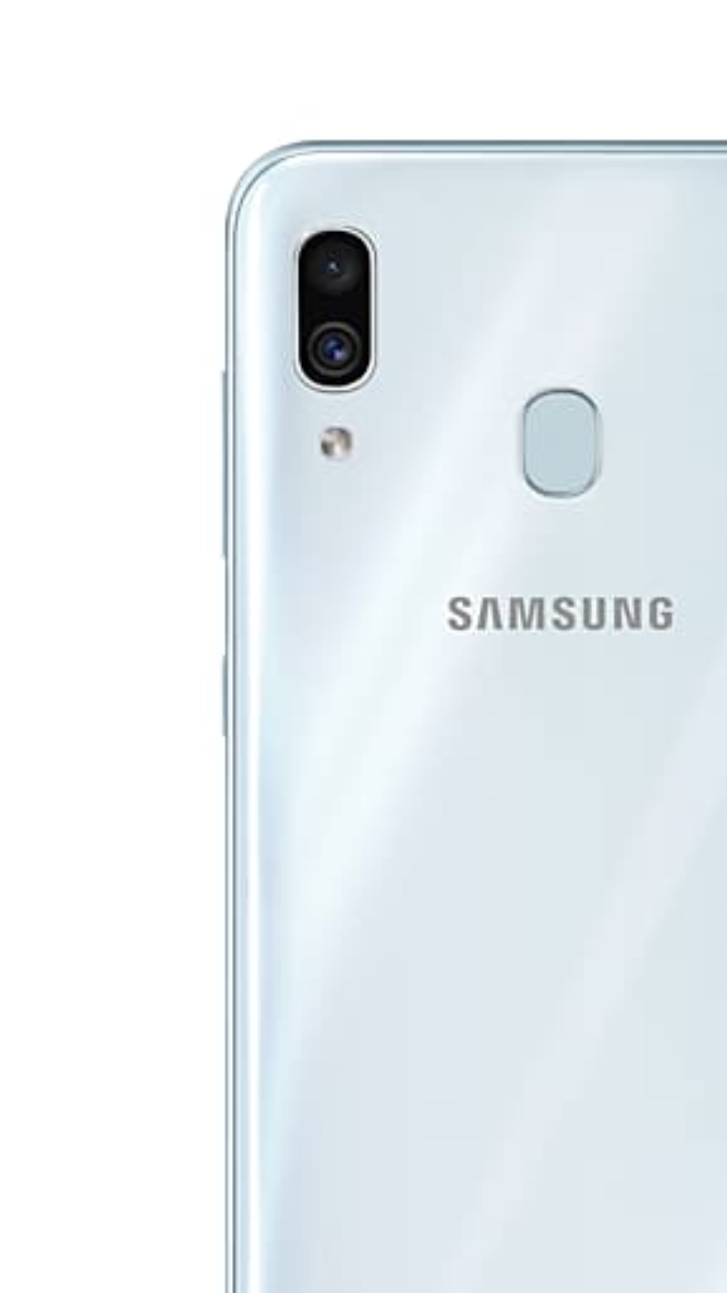 갤럭시 A30의 카메라가 세로 배열이고 카메라와의 간격이 있기 때문입니다.