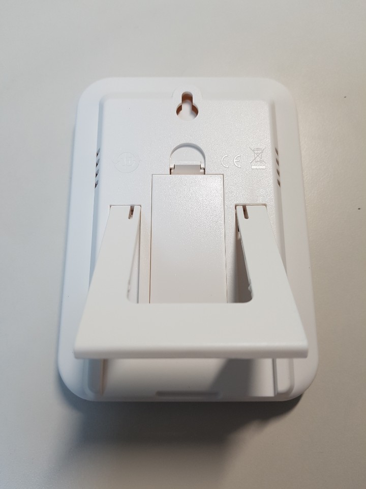 후면에는 거치대가 있어 탁자 위에 세울 수 있습니다.