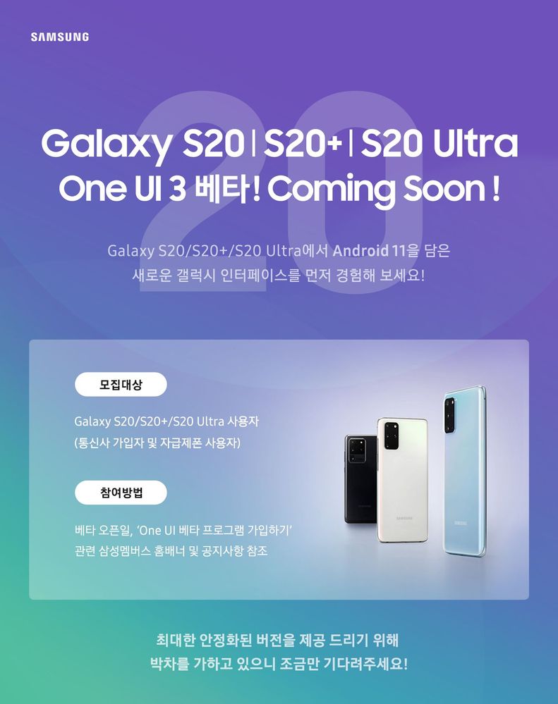 삼성전자가 원 UI 3의 공개 베타를 예고했습니다.
