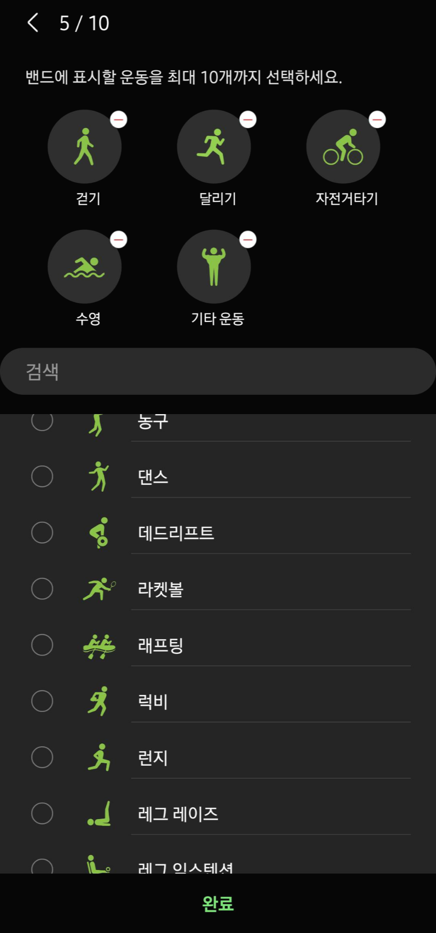 운동같은 경우 5가지 운동을 자동 감지하고 최대 90가지 수동 측청을 지원합니다.