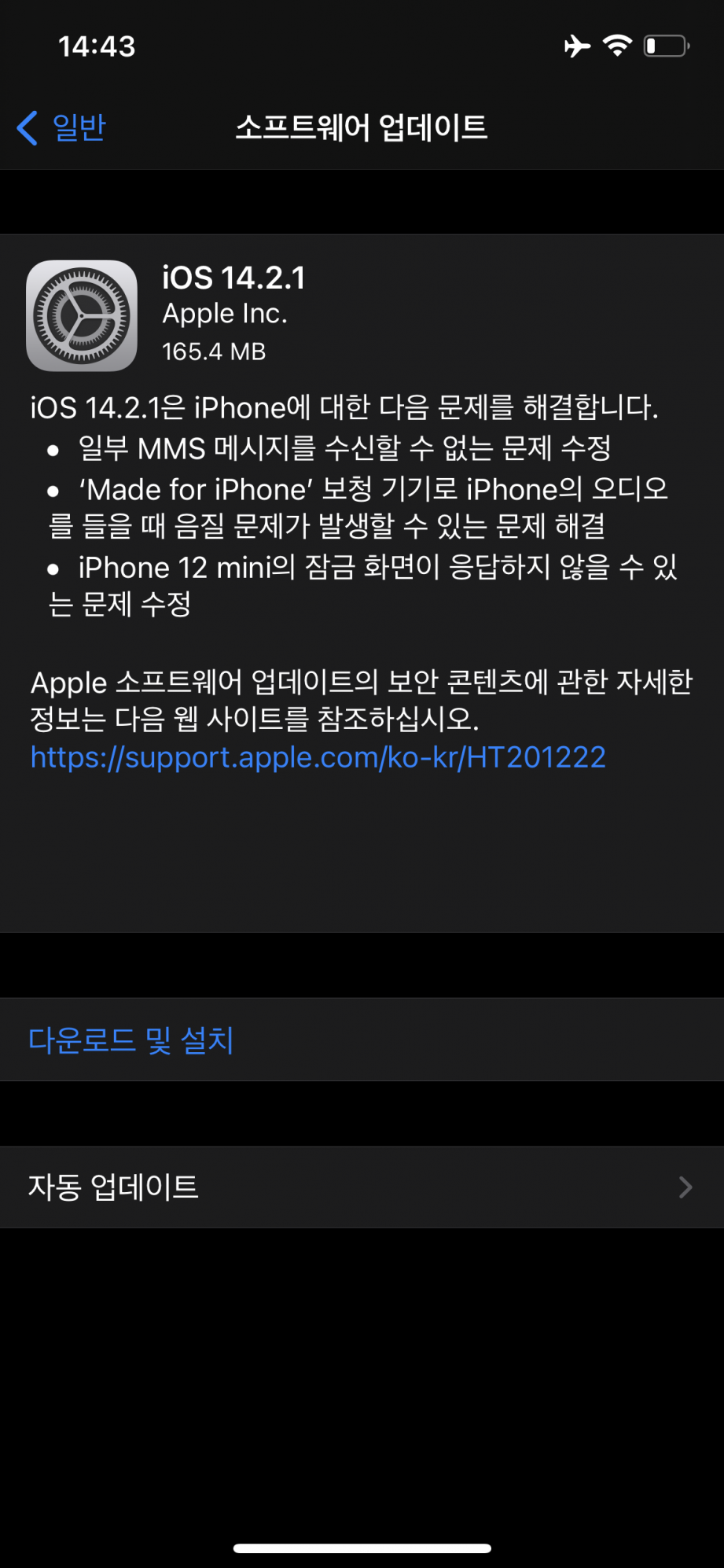 iOS 14.2.1 버전으로 터치 현상 해결 외에도 다른 오류를 해결한 것으로 보입니다.