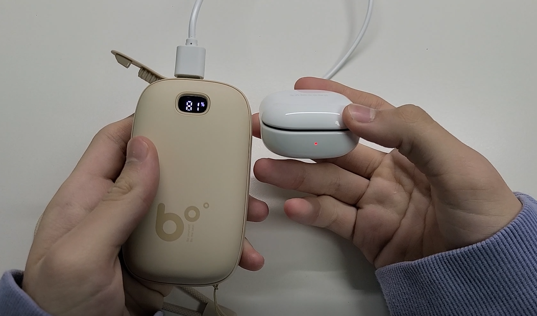 이 제품은 또한 보조배터리로도 사용이 가능한데 손난로 기능과 보조배터리 기능을 동시에 사용하는 것은 불가능했습니다.
