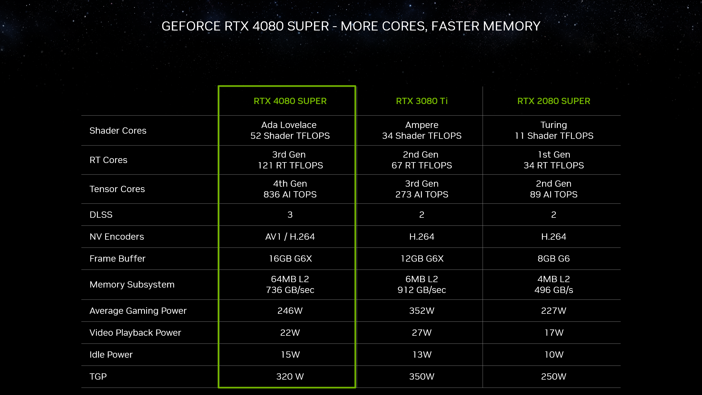 이번 엔비디아 주가 급등에는 최근 CES에서 공개한 새로운 그래픽카드인 RTX 40 슈퍼 시리즈의 영향이 컸다고 볼 수 있습니다. 이번 그래픽카드의 특징이라면 생성형 인공지능 처리 속도가 약 70%가량 높아졌다고 합니다.
