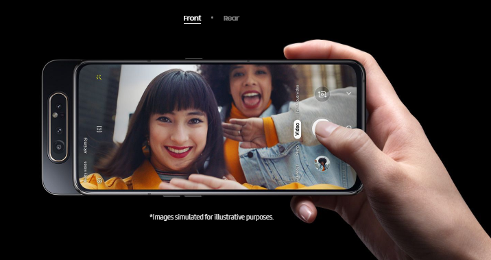 이번 A80은 화면을 최대한 넓히기 위해 플로팅 카메라를 탑제했습니다.