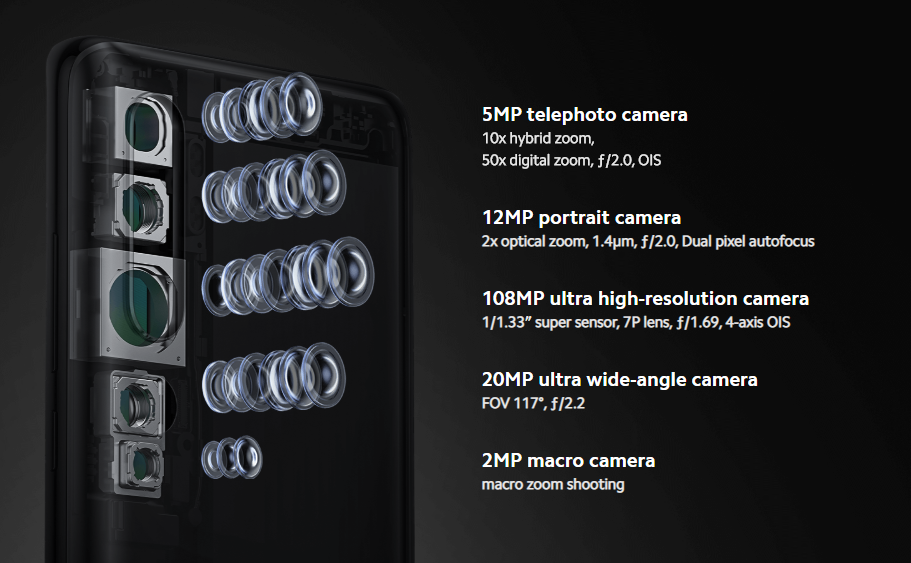 이런 식으로 해서 총 5개의 카메라가 들어갔습니다. 1억 800만 회소 메인 카메라로는 사람의 눈동자에 비치는 것까지 다 찍힌다고 샤오미에서 언급하였습니다.