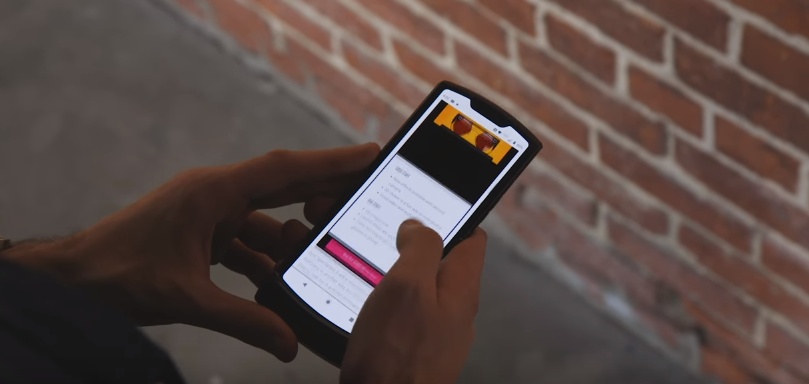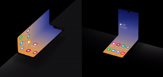 또한 저번 달에 삼성 개발자 컨퍼런스에서 공개한 폴더블폰과 같은 가로로 접히는 형태입니다.