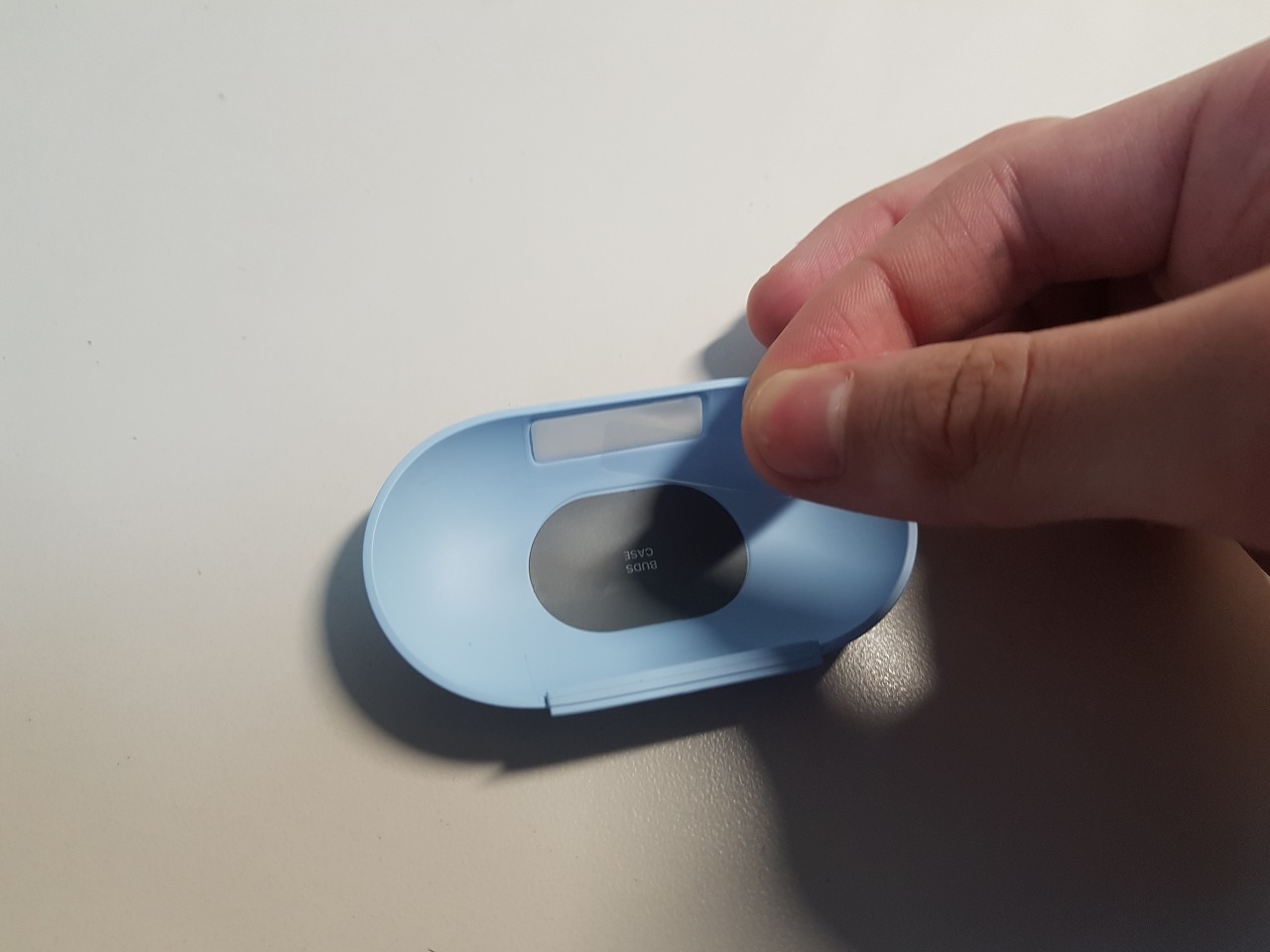 먼저 케이스의 하단 부분을 버즈에 장착해줍니다. 따로 스티커 같은 것은 없습니다.