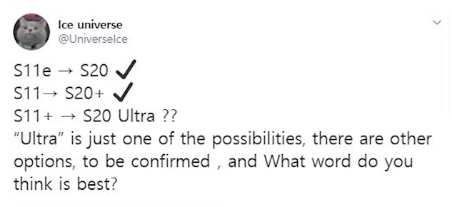 유명한 유출 전문 트위터(?)인 Ice Universe에 따르면 울트라는 아직 확정된 이름이 아니며 하나의 가능성이라는 이야기를 했었습니다.
