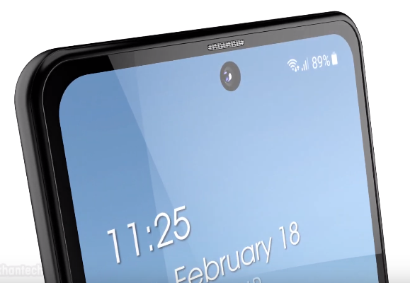 내부의 베젤은 갤럭시 프리미엄 라인업들보다는 두꺼운 모습을 보여주고 있고 중앙 펀치홀 카메라를 탑재한 것을 확인할 수 있습니다.