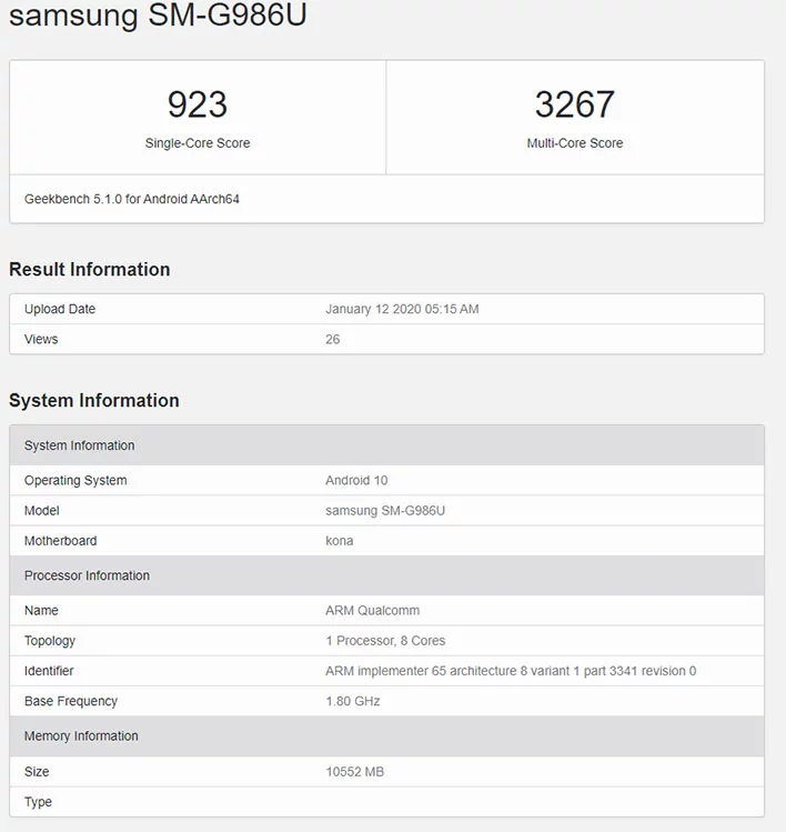 벤치마크 점수를 확인해보면 싱글코어 점수는 923점, 멀티코어 점수는 3267점으로 갤럭시 노트10에 탑재된 엑시노스 9825보다 더 발전한 수치인 것을 알 수 있습니다.
